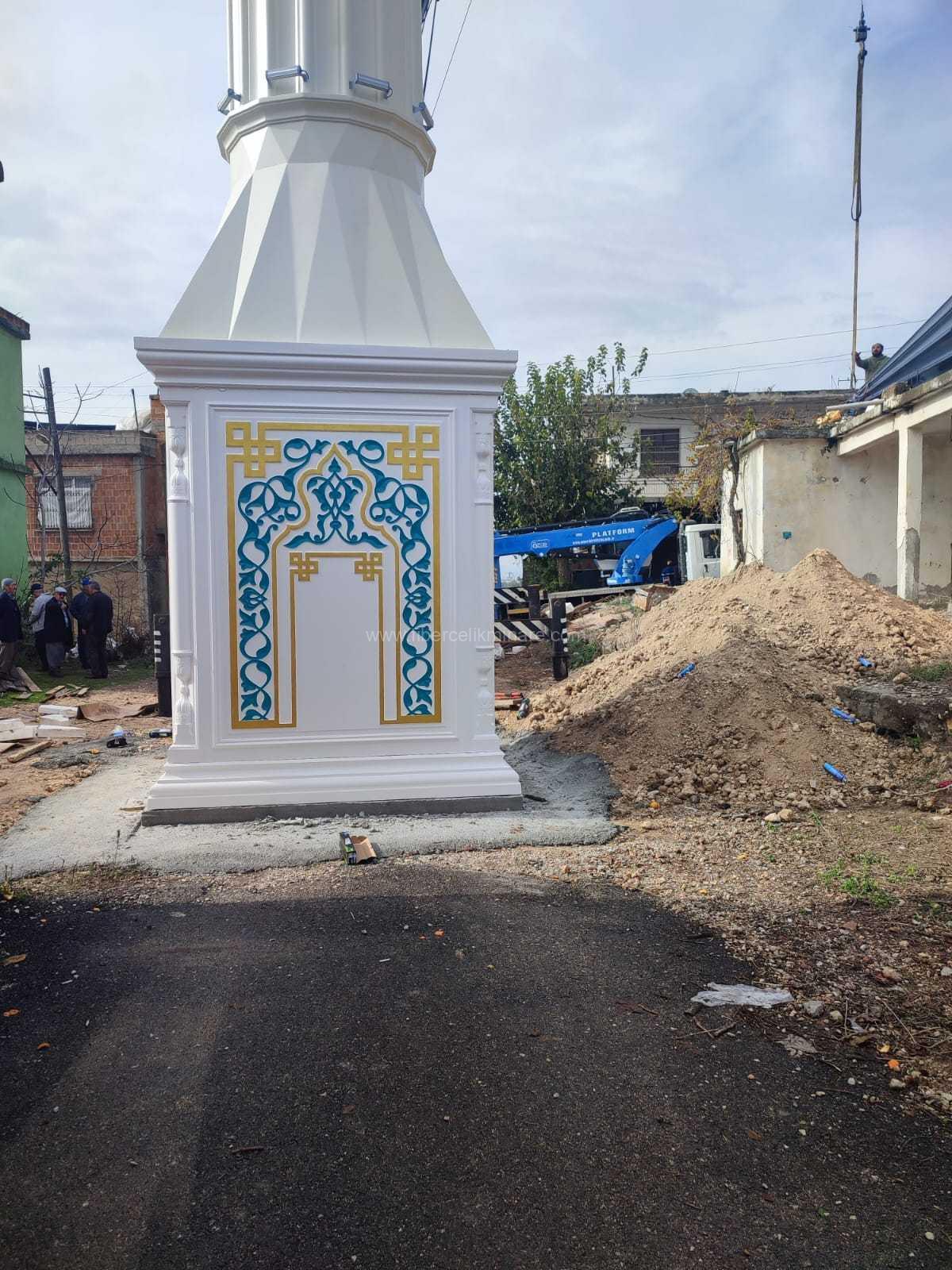 Adana ilimizin Sarıçam ilçesine bağlı Kılıç Köyü’nde yer alan, Sarıçam İlçe Müftülüğüne bağlı Yeni Cami, Fiberglas Kaplama Çelik Minare uygulamamız sayesinde modern ve zarif bir görünüme kavuşturuldu. Fiber Çelik Minare ekibimizin uzman çalışmaları sayesinde bu proje, kısa sürede başarıyla tamamlanarak camimizin manevi dokusuna değerli bir katkı sağladı.