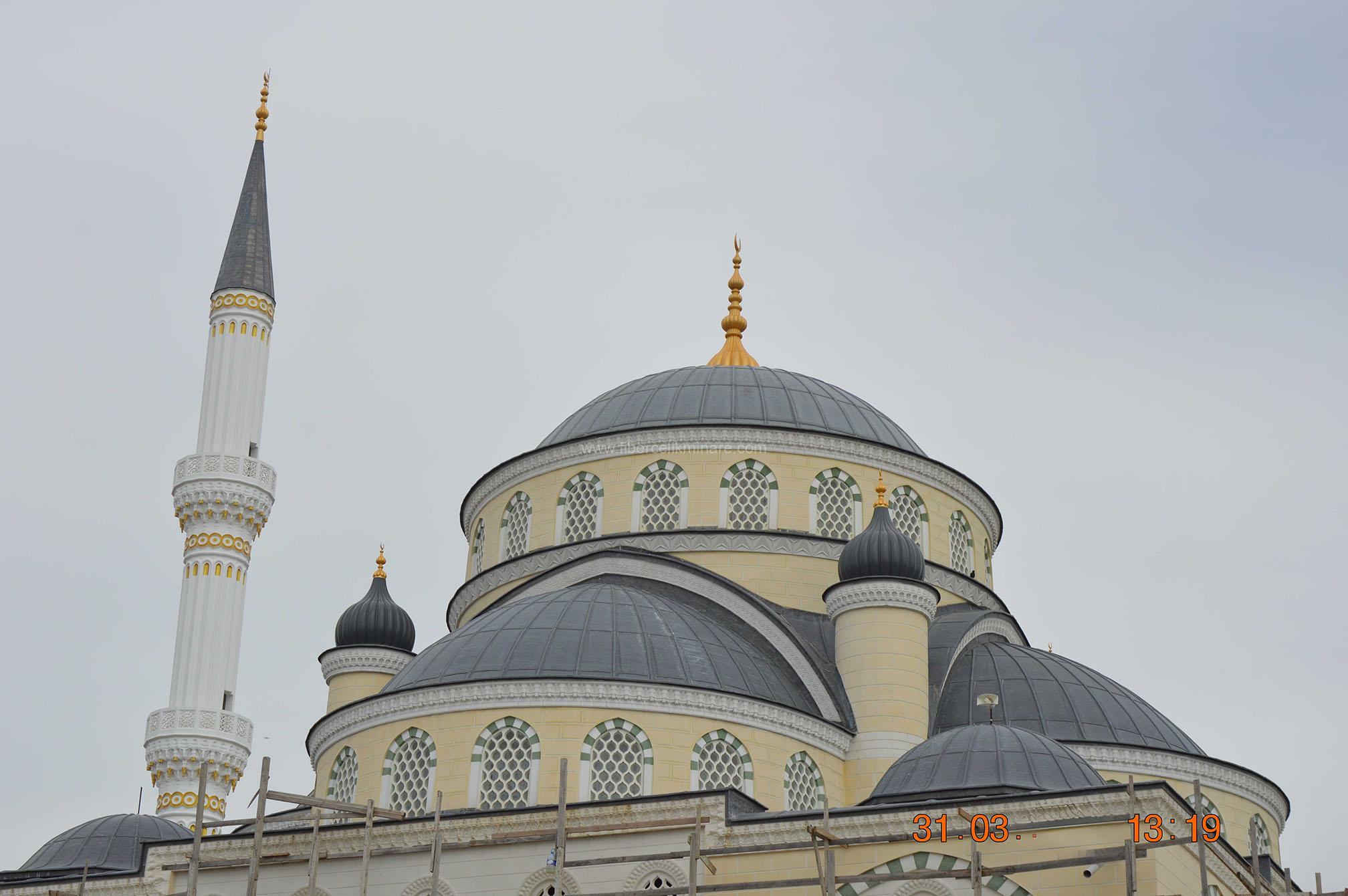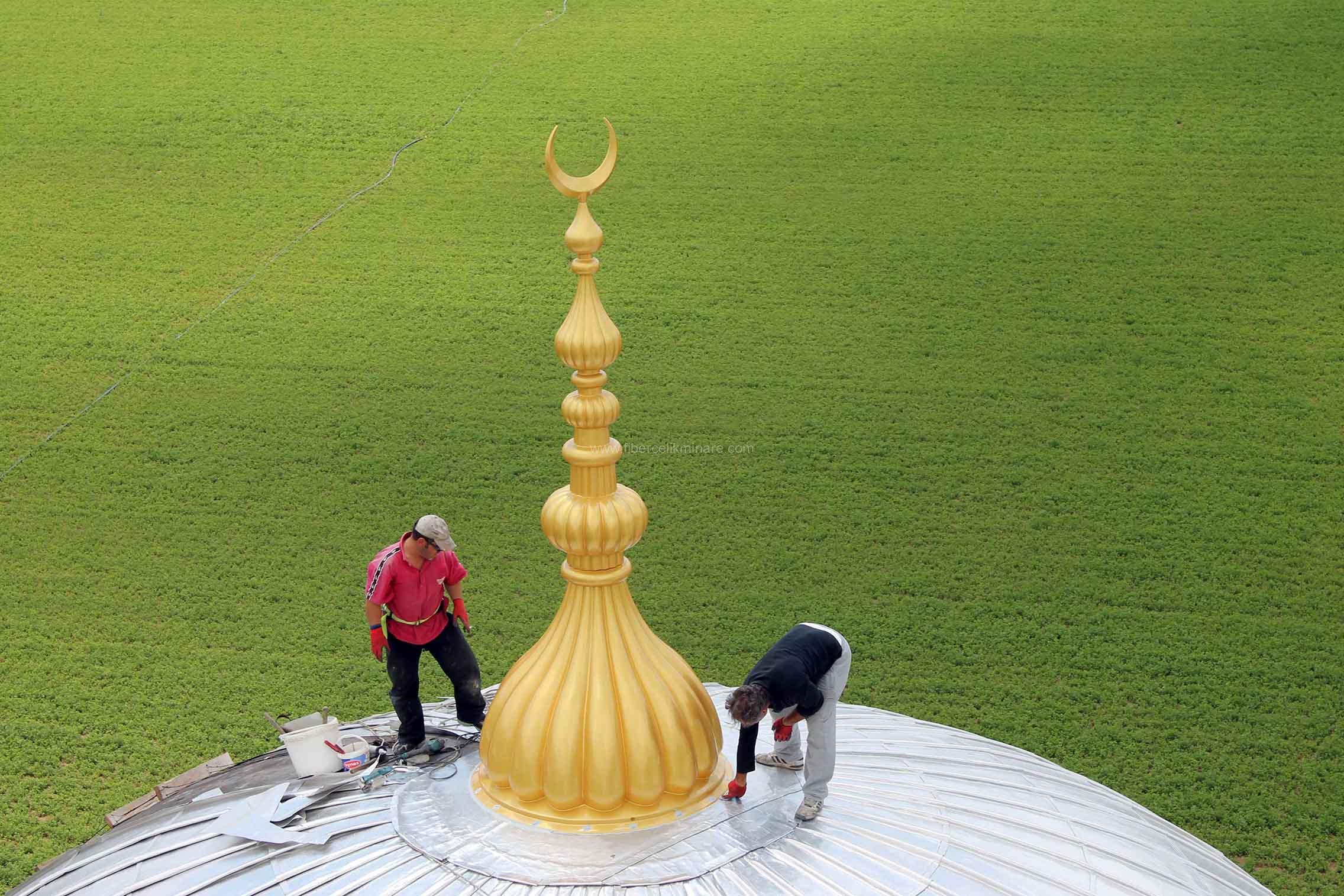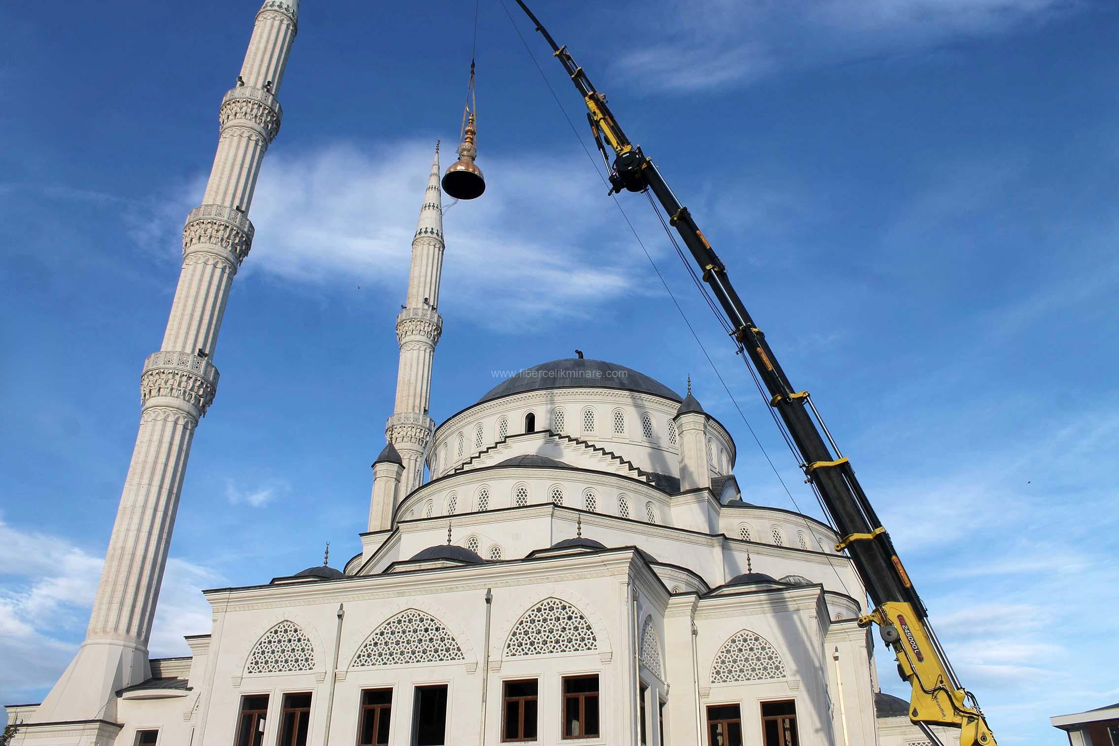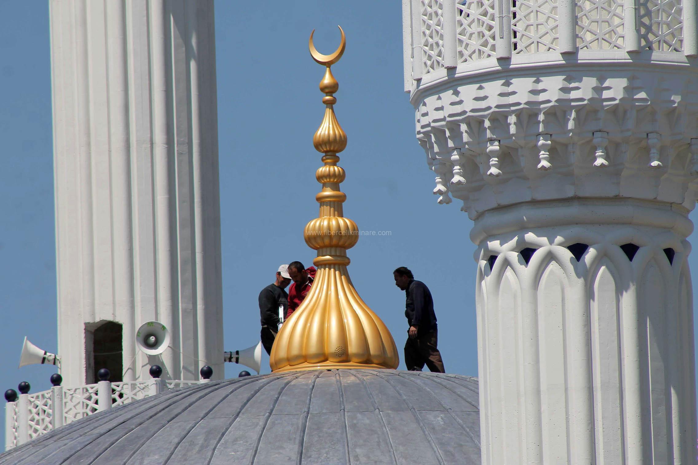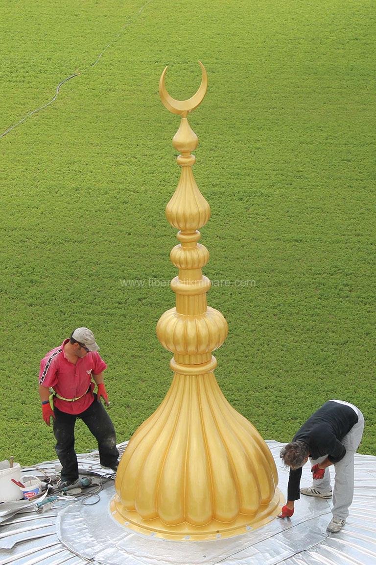 Hafif fiberglas alemler, minare veya kubbenin üst kısmına monte edilirken kolaylık sağlar. Metal desteklerle güvenli bir şekilde monte edilmesi önemlidir.
