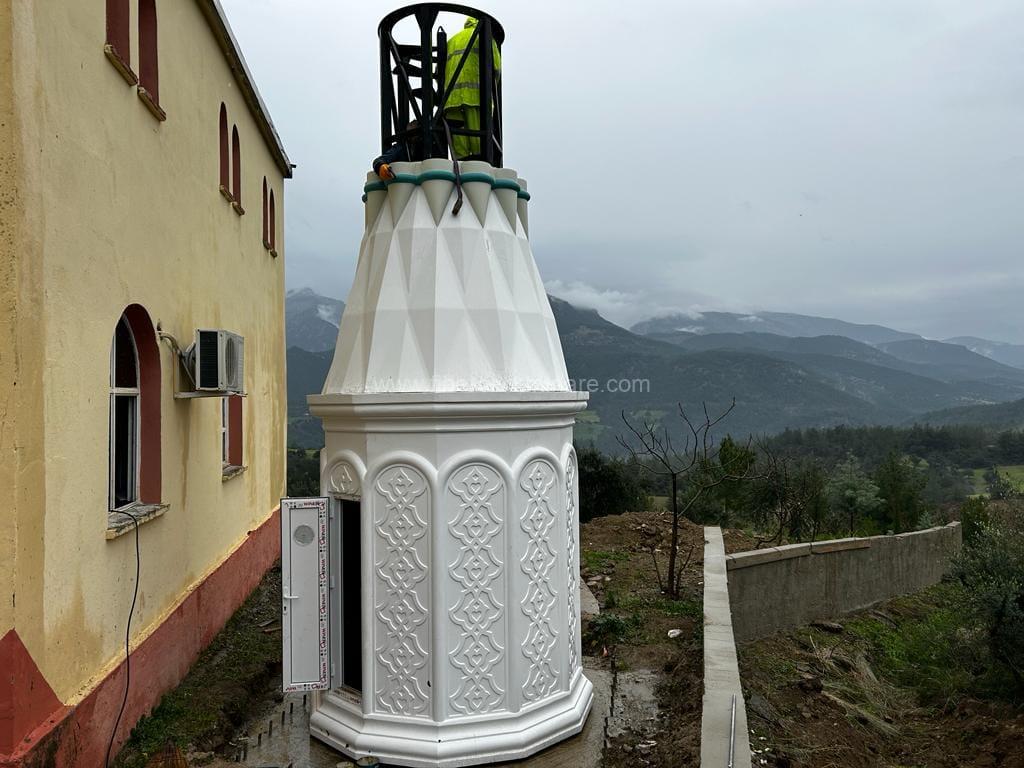 Adana’nın Kozan ilçesine bağlı Doğanalanı Mahallesi’nde bulunan, Kozan İlçe Müftülüğüne bağlı Sarıağaç Cami, Fiberglas Kaplama Çelik Minare uygulamamız ile estetik ve modern bir görünüm kazandı. Fiber Çelik Minare ekibimizin profesyonel çalışmaları sayesinde bu proje hızlı ve sorunsuz bir şekilde tamamlandı, camimizin mimari yapısına şıklık kattı.